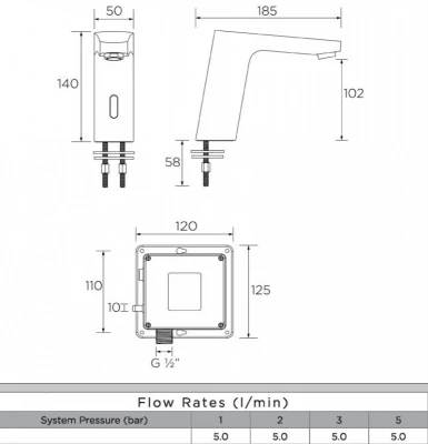 A WRAS approved automatic contemporary spout sensor tap – for commercial/healthcare washrooms