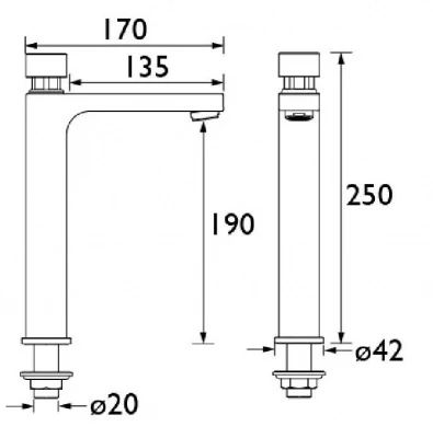 - Spout outlet height of 190mm – suitable for raised height basins and bowls