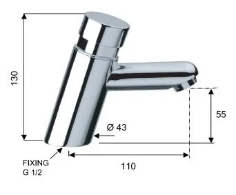 An angled dessign self closing push down pillar basin tap – closes after approx 6-8 seconds to ensure optimum water saving.