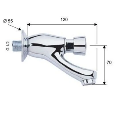 The commercial series non concussive bib tap is a wall mounted tap with a push button water control that closes after approx 6-8 seconds to ensure optimum water saving.