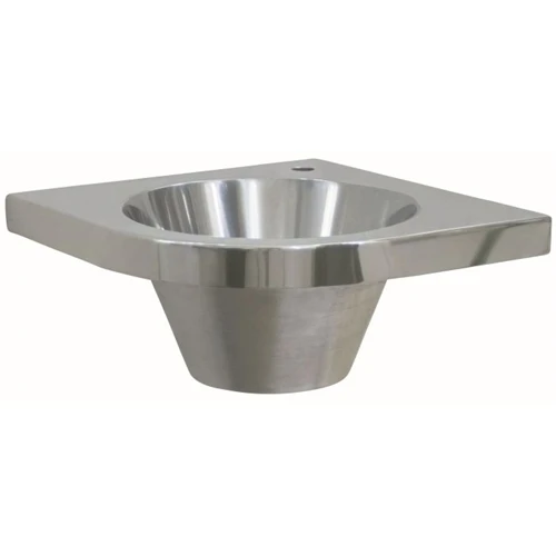 A corner fitting wall mounted wash basin with no overflow and single tap hole – Fits into any corner to provide a self contained, spacesaving hand wash station.