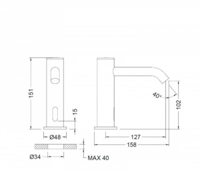 A matt black finish designer basin mounted sensor tap – water saving design uses max 3.8 litres per minute.