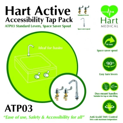 A special needs easy to use anti-scald tap with easy to operate panel valves and separate fixed basin spout – provides flexibility in bathrooms and washrooms