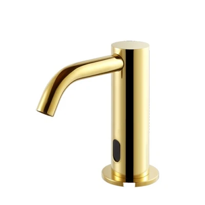 A Polished Gold finish designer touchless sensor tap – for commercial/healthcare handwashing ( option of mains/battery powered) for timed flow, hygienic hand washing.