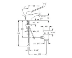 An elbow lever operated extra tall medical standard basin tap for use with raised bowls or basins