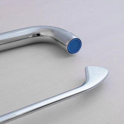 A medical and healthcare compliant extended single lever kitchen mixer tap which combines easy to use elbow lever operation with thermostatic temperature control.