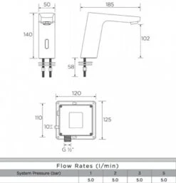 - Minimum recommended water pressure is 0.5bar (Max 6.0 bar)