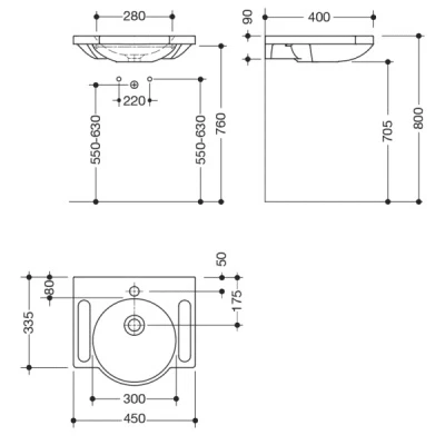 - Option of single tap hole or no tap hole to suit wall mounted taps​