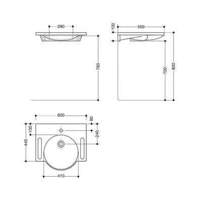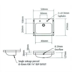 - Option of single tap hole or no tap hole to suit wall mounted taps