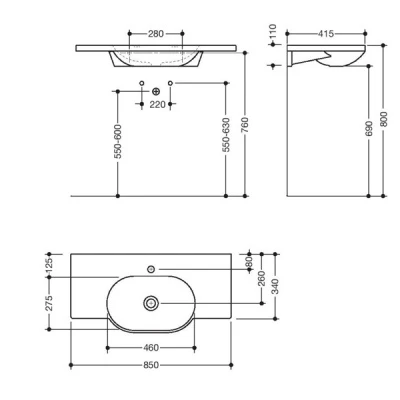 850mm (w) x 415mm (d)