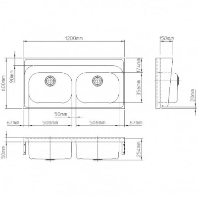 A wall mounted stainless steel double bowl handwash station with no overflow or tap hole – For use with wall mounted taps