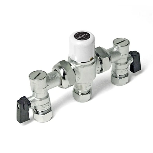 A TMV2 & TMV3 approved failsafe thermostatic mixing valve for safely blending hot and cold water feeds to a safe water temperature. The valves have isolating service valves to shut off the water supply without any disruption