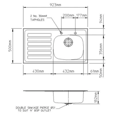 - 2 tap holes – 200mm spacing