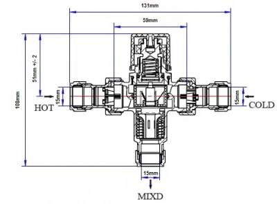 A WRAS approved in line TMV2/TMV3 mixing valves with 15mm copper compression fittings