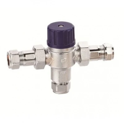 A WRAS approved in line TMV2/TMV3 mixing valves with 22mm copper compression fittings