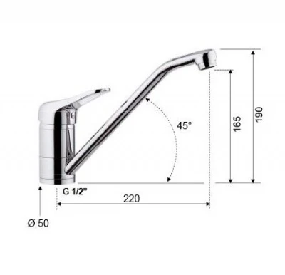 A conventional swivel spout sink tap with single feed inlet – for cold or premixed water.