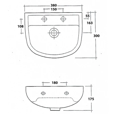 A compact medical use wall fitted basin with one tap hole – 38cm wide