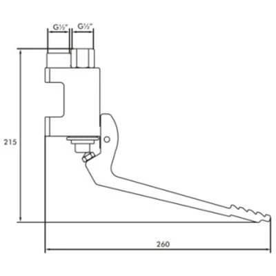 A wall fitted tap operated by depressing the pedal by foot – increasing pressure increases the water flow. For water supply to spouts, wall outlets etc.