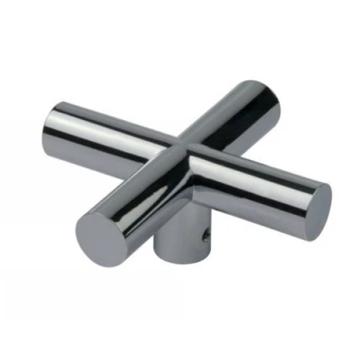 A pair of replacement modern tap cross handles in an all chrome finish. These handles will fit quarter turn or compression (washer) valves with 20 teeth on the spline