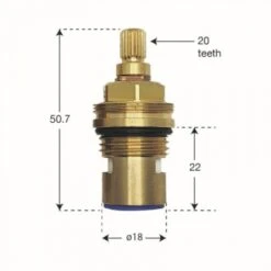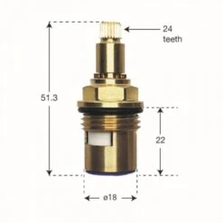 Replacement 3/4 Inch BSP Quarter Tap Valves With 24 Teeth – 53mm Tall.